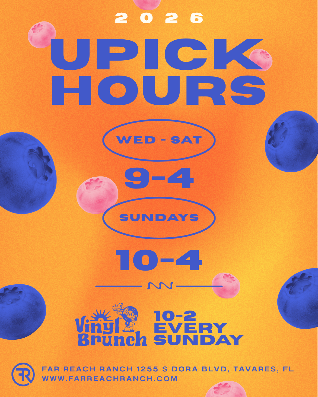 . Nestled on the shores of Lake Dora in Central Florida, Far Reach Ranch is a family owned & operated Upick farm & event space. We offer UPICK blueberries during season (March-May), craft jams, honey and baked goods. We also have events, live music and more throughout the year. In 2020, we opened our event space: The Packing House, which hosts weddings, concerts and special events. In 2023 we debuted Fear Reach Scream Park - a thrilling haunted attraction that is open Sept-October!